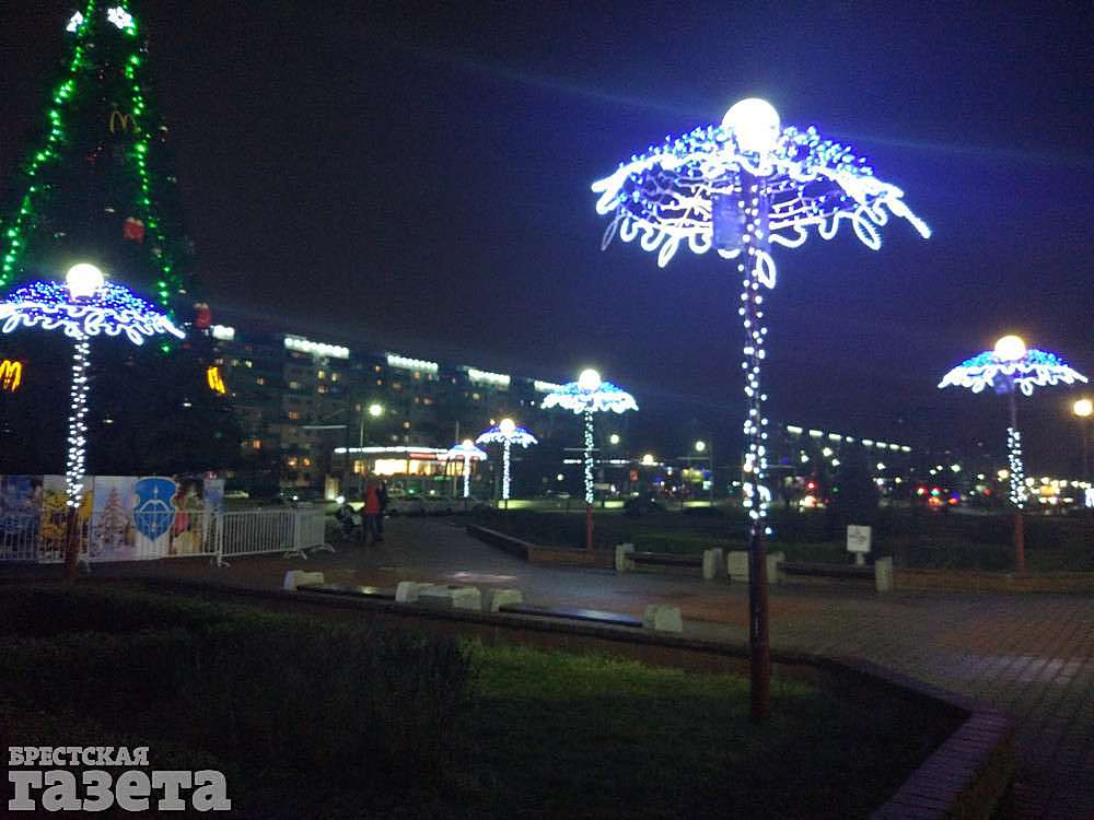 В прошлом году главную елку Московского района начали устанавливать на целый месяц позже — 16 декабря. А засияла огнями она лишь 20-го числа. Территорию рядом украсили в прошлом году иллюминацией «по погоде» — светящимися зонтиками. Что ждет брестчан в этом году, пока неизвестно.