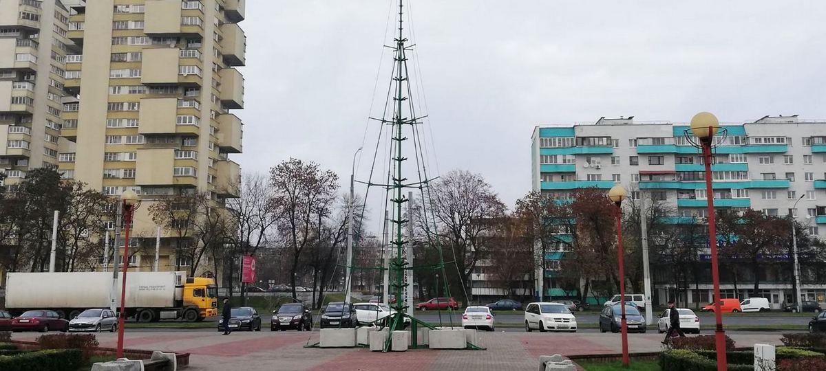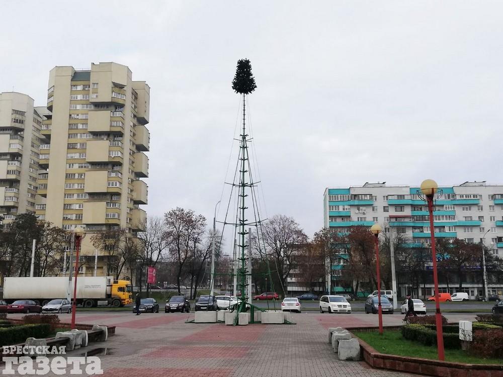Возле Администрации Московского района Бреста начали устанавливать новогоднюю елку. Рабочие появились там в понедельник, а утром 17 ноября уже стоял собранный каркас.