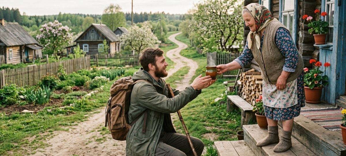 Реакция хозяйки оказалась неожиданно теплой. Она вынесла не только чай, но и сахар с батоном. Когда гость попытался оставить деньги, женщина отказалась — несмотря на настойчивые уговоры.
